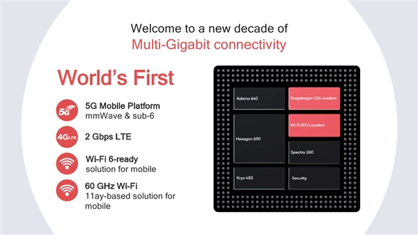 第一批基于骁龙平台的5G手机遇采用骁龙855处置器、骁龙X50基带的组合,是全球第一个计较机视觉(CU) ISP,别的,比拟于其他7nm处置器。